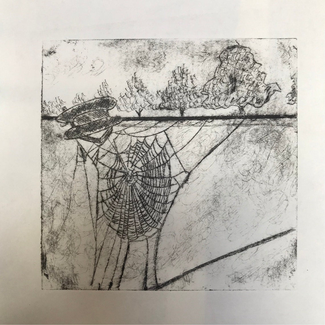 - Spider web drypoint etching 11x11cm