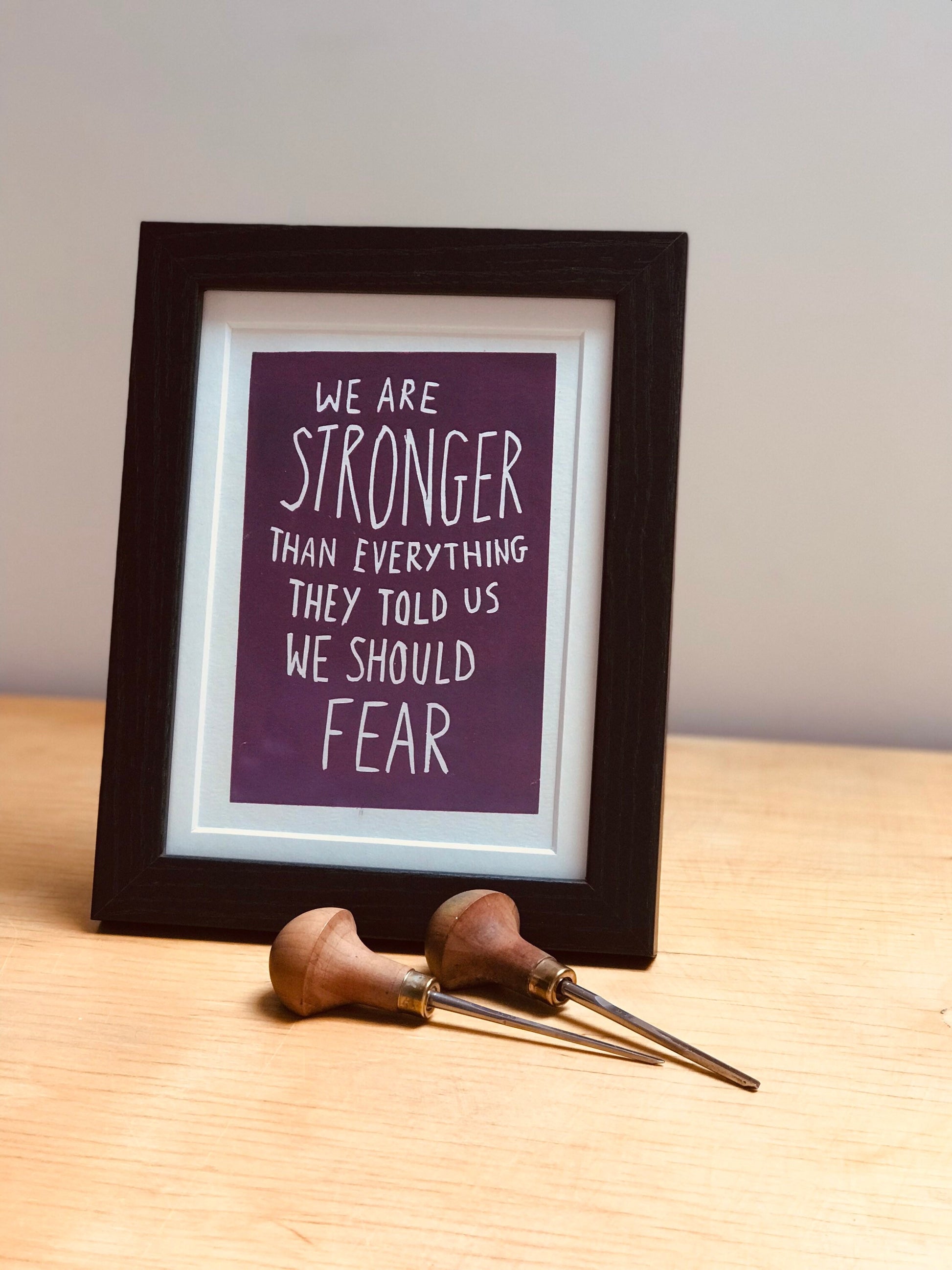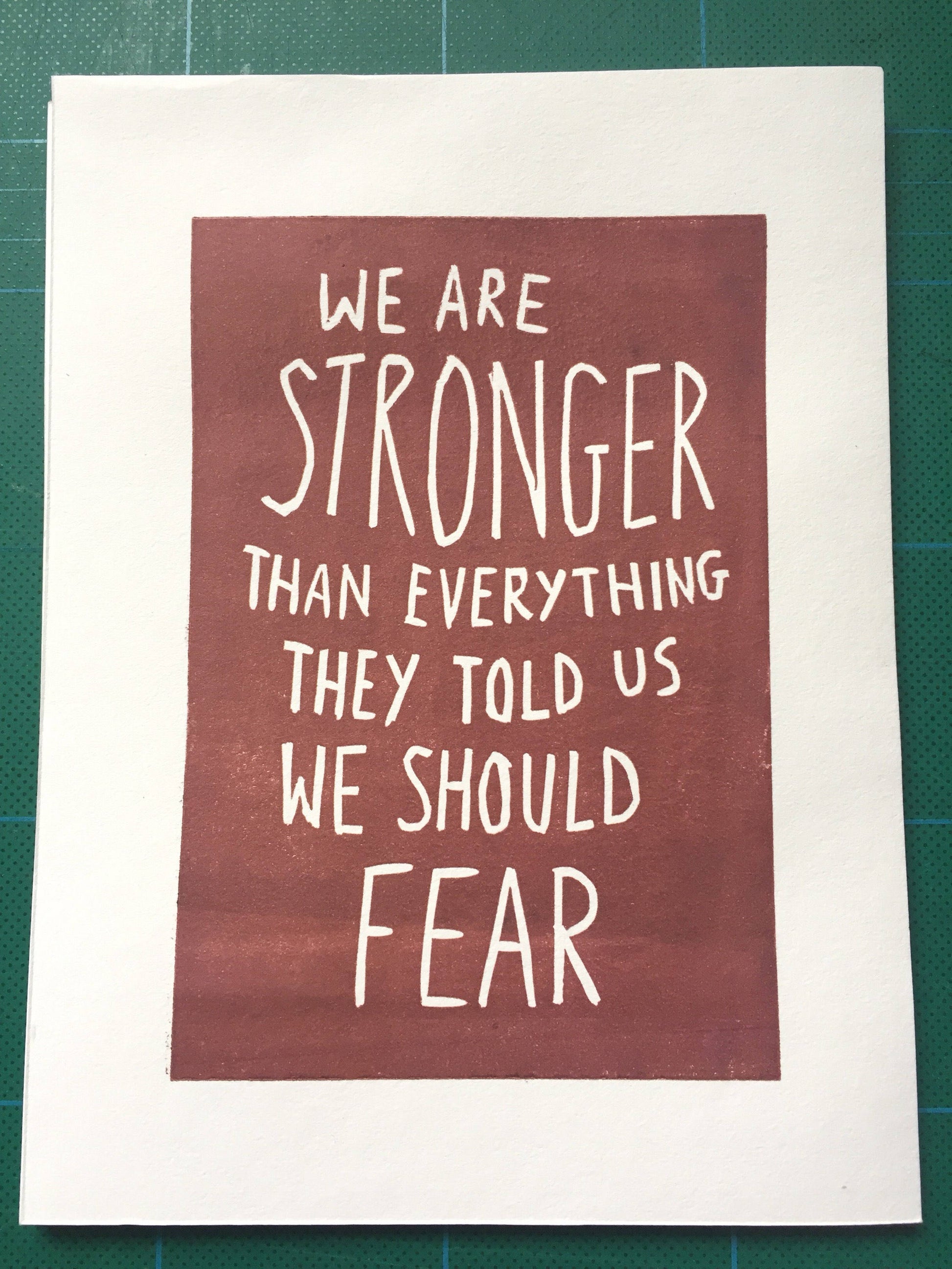 Against Me! 'We are stronger than everything they told us we should fear' lyrics inspired linocut print