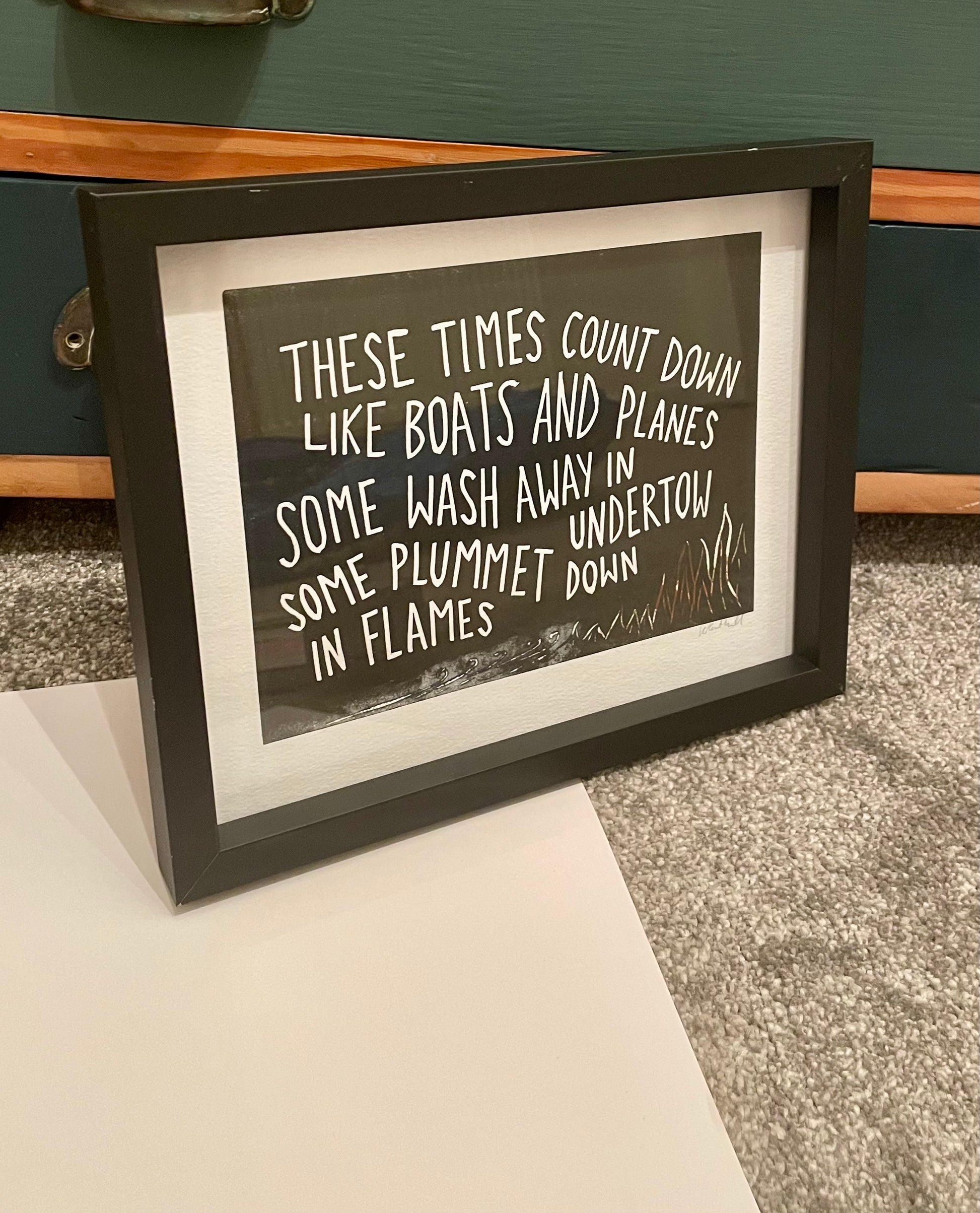 Alkaline Trio 'Trucks and Trains' lyrics inspired linocut print