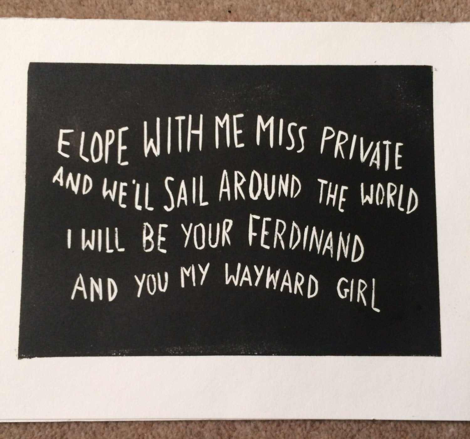 Belle and Sebastian 'Piazza, New York Catcher' song lyrics linocut (also on juno soundtrack)