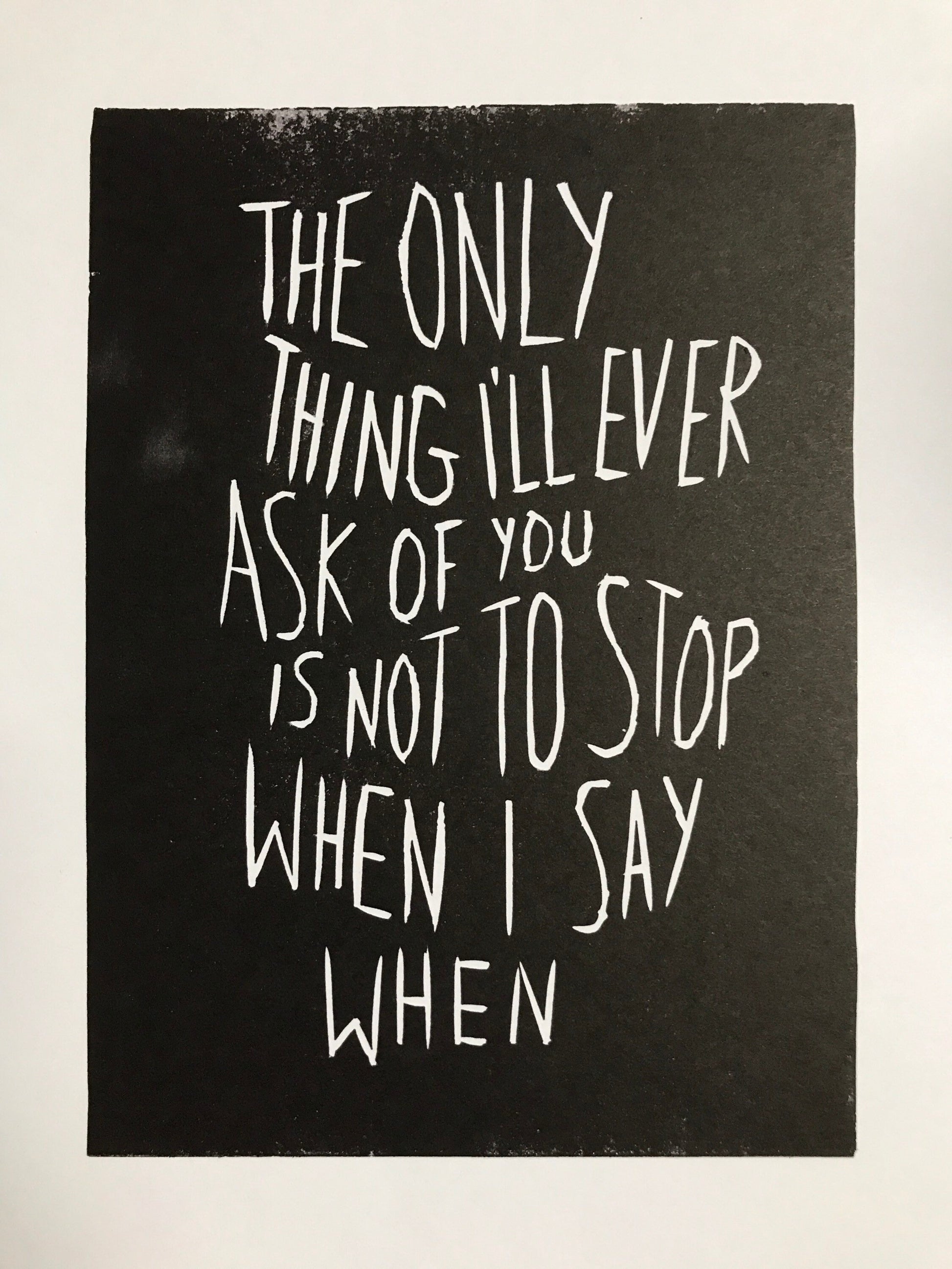 This is a linocut print of lyrics from one if my favourite songs - Everlong by Foo Fighters.