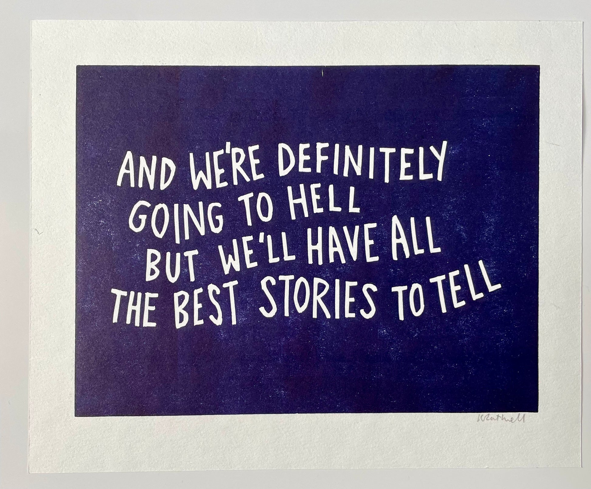 This is a hand cut and pulled, linocut print of lyrics from Frank Turner's ‘The Ballad of Me & My Friends'.
