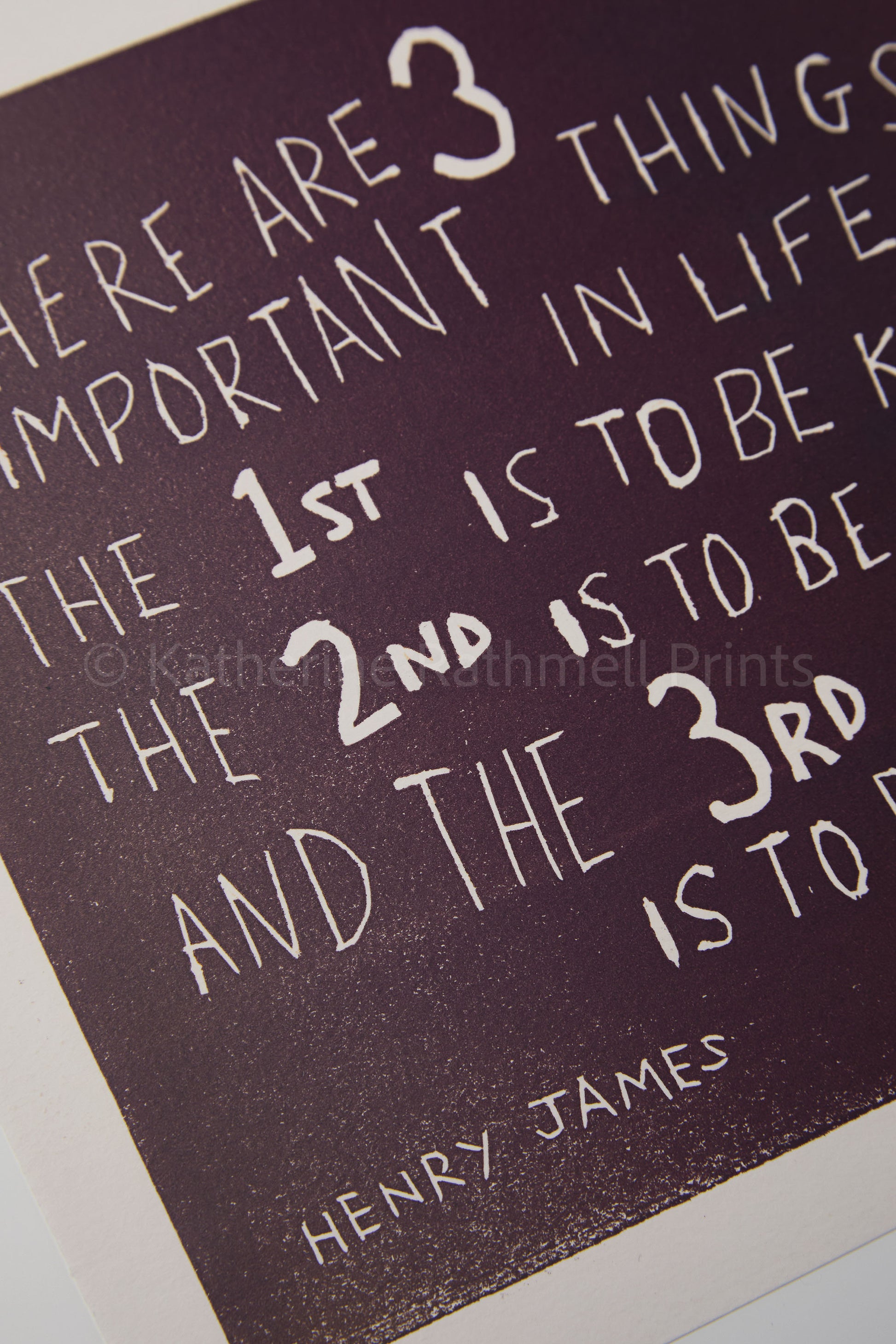 Henry James - "There are three important things in life..." Inspirational Linocut
