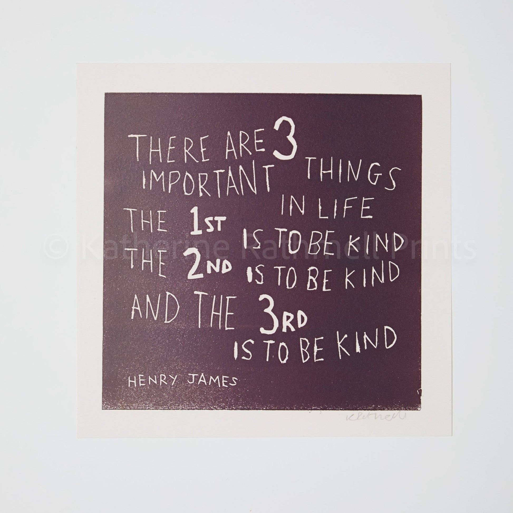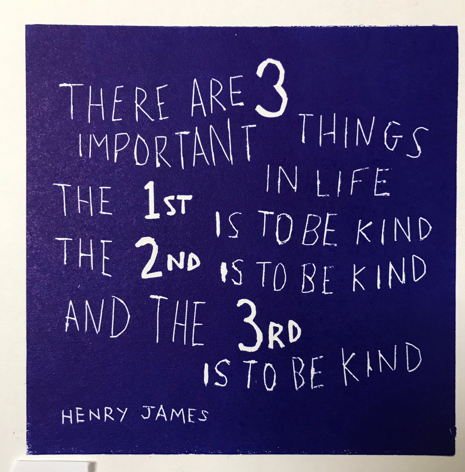 Henry James - "There are three important things in life. The first is to be kind, the second is to be kind, and the third is to be kind"